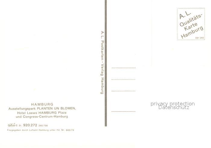 73721091 HAMBURG CITY Ausstellungspark Planten un Blomen Hotel Loews Hamburg Plaza Congress-Centrum postalisch nicht gelaufen Fliegeraufnahme Erhaltung siehe scans [FriedD77] Fliegeraufnahme Frie Katcode 11110002000000
