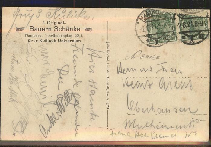 41219314 HAMBURG CITY Bauern Schaenke postalisch gelaufen gute Erhaltung Alte Ansichtskarte Postkarte alte Postkarte Elvi Katcode 11110002000000