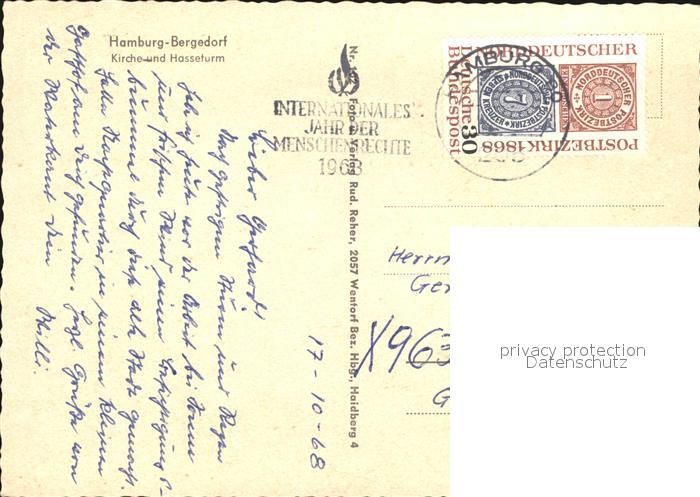 72455223 alte Postkarte HAMBURG CITY Bergedorf Kirche Hasseturm postalisch gelaufen Erhaltung siehe scans KatCode: 11110002000000