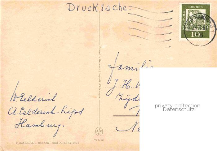 72662754 alte Postkarte HAMBURG CITY Binnen- und Aussenalster postalisch gelaufen Erhaltung siehe scans [AndreD76] KatCode: 11110002000000