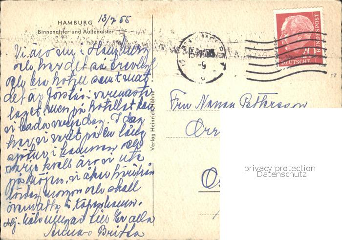 72201051 alte Postkarte HAMBURG CITY Binnen und Aussenalster postalisch gelaufen Erhaltung siehe scans KatCode: 11110002000000