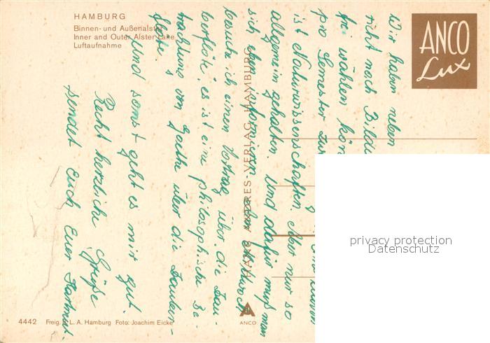 73707785 HAMBURG CITY Binnen- und Aussenalster postalisch nicht gelaufen Fliegeraufnahme Erhaltung siehe scans [FriedD77] Fliegeraufnahme Frie Katcode 11110002000000