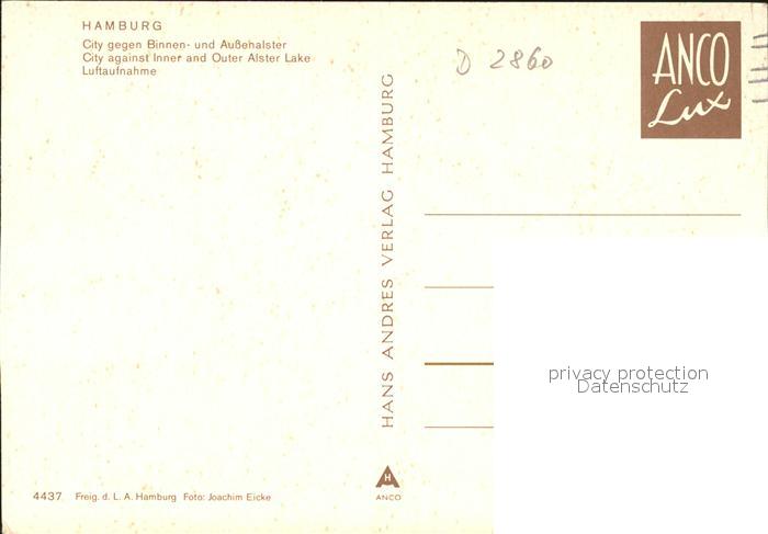 72033317 HAMBURG CITY Binnen- und Aussenalster Fliegeraufnahme postalisch nicht gelaufen Erhaltung siehe scans KatCode: 11110002000000