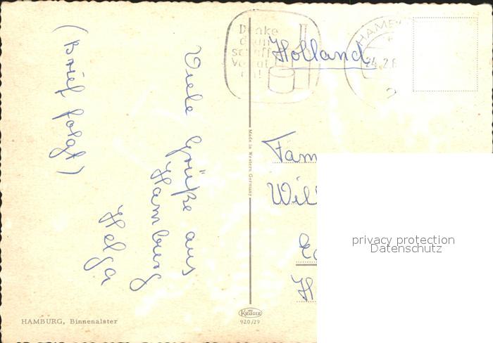 72272659 alte Postkarte HAMBURG CITY Binnenalster postalisch gelaufen Erhaltung siehe scans KatCode: 11110002000000
