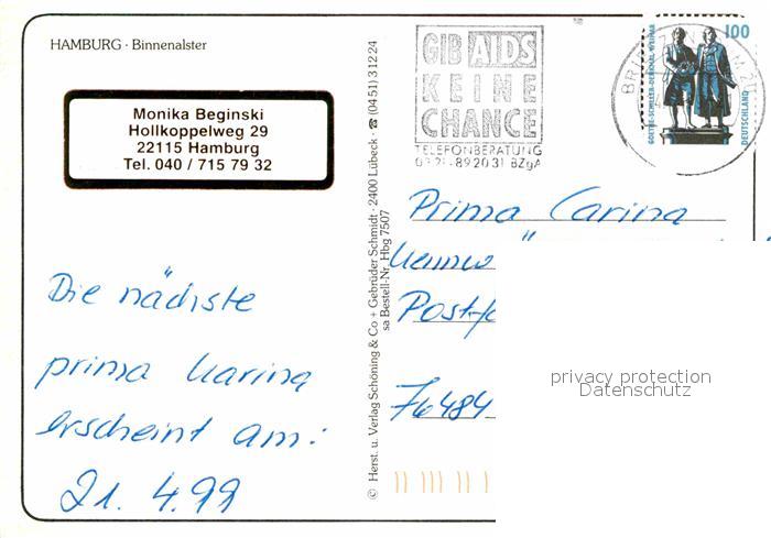 72724145 alte Postkarte HAMBURG CITY Binnenalster postalisch gelaufen Erhaltung siehe scans [FriedD77] KatCode: 11110002000000