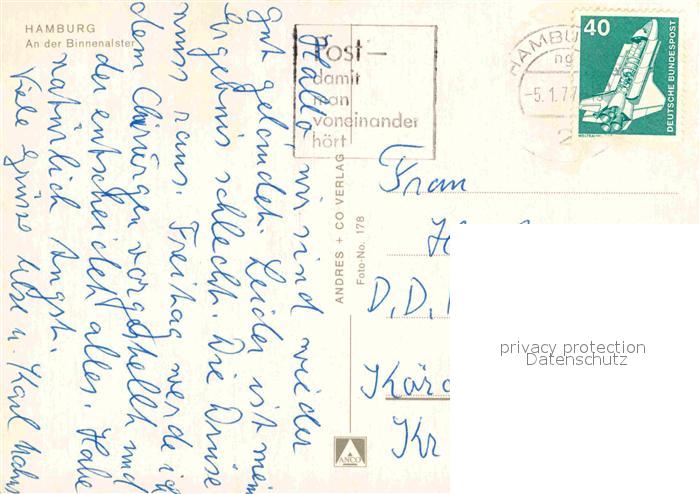 72628413 alte Postkarte HAMBURG CITY Binnenalster postalisch gelaufen Erhaltung siehe scans [NatalD47] KatCode: 11110002000000