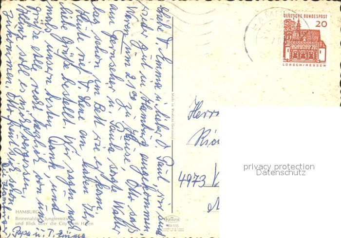 71938793 alte Postkarte HAMBURG CITY Binnenalster Jungfernstieg Blick ueber die City zum Hafen Fliegeraufnahme postalisch gelaufen KatCode: 11110002000000