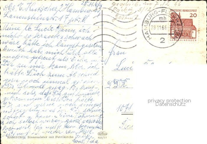 72582074 alte Postkarte HAMBURG CITY Binnenalster mit Petrikirche postalisch gelaufen Erhaltung siehe scans [WerneD78] KatCode: 11110002000000