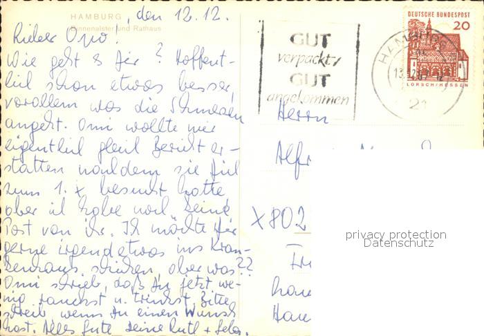 72541147 alte Postkarte HAMBURG CITY Binnenalster mit Rathaus postalisch gelaufen Erhaltung siehe scans [LiesaD40 kt122box] KatCode: 11110002000000