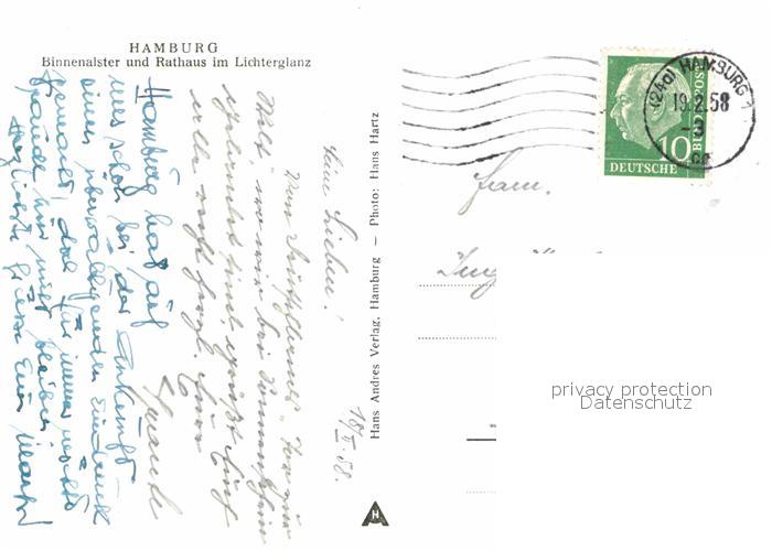 72814320 alte Postkarte HAMBURG CITY Binnenalster Rathaus postalisch gelaufen Erhaltung siehe scans [AndreD76] KatCode: 11110002000000