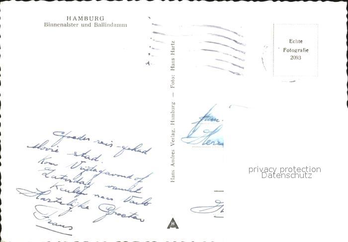 72392274 alte Postkarte HAMBURG CITY Binnenalster und Ballindamm postalisch gelaufen Erhaltung siehe scans KatCode: 11110002000000