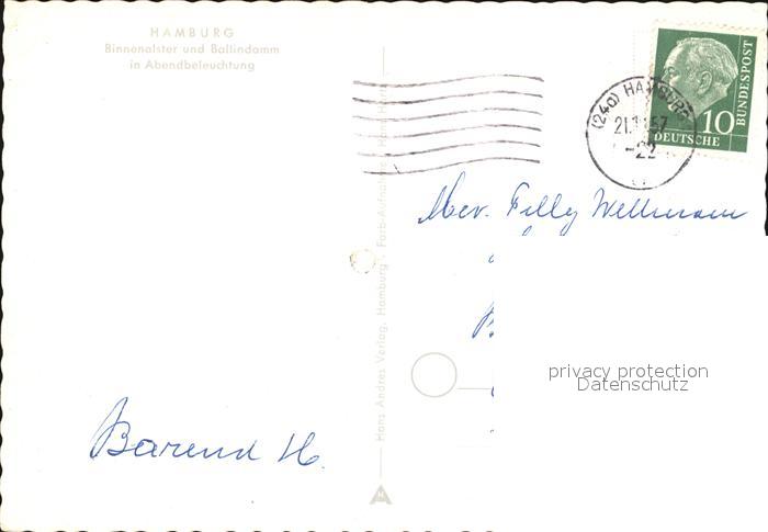 72451983 alte Postkarte HAMBURG CITY Binnenalster und Ballindamm postalisch gelaufen Erhaltung siehe scans KatCode: 11110002000000