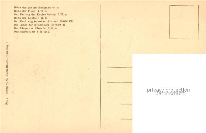 43498763 HAMBURG CITY Bismarck Denkmal postalisch nicht gelaufen Erhaltung siehe scans [LiesaD40] Lies Katcode 11110002000000