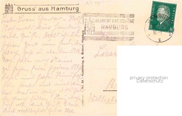 72728900 alte Postkarte HAMBURG CITY Bismarckdenkmal postalisch gelaufen Erhaltung siehe scans [AndreD76] KatCode: 11110002000000