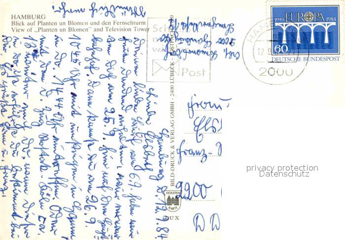 72699530 alte Postkarte HAMBURG CITY Blick auf Planten und Blomen mit Fernsehturm postalisch gelaufen Erhaltung siehe scans [WerneD78] KatCode: 11110002000000