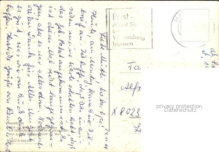 72505510 alte Postkarte HAMBURG CITY Blick auf Stadt ueberseebruecke TS Queen Elizabeth II postalisch gelaufen Erhaltung siehe scans KatCode: 11110002000000
