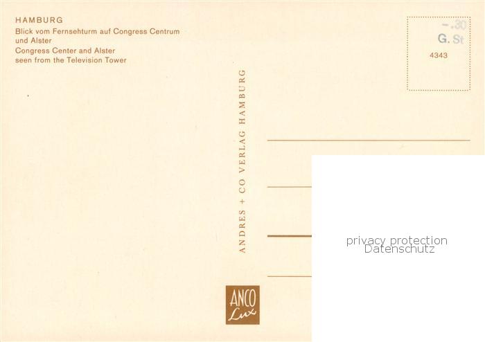 73755789 HAMBURG CITY Blick vom Fernsehturm auf Congress Centrum und Alster postalisch nicht gelaufen Erhaltung siehe scans [FriedD77] Frie Katcode 11110002000000