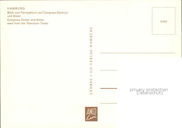 72131363 HAMBURG CITY Blick vom Fernsehturm auf Congress-Centrum und Alster postalisch nicht gelaufen Erhaltung siehe scans KatCode: 11110002000000