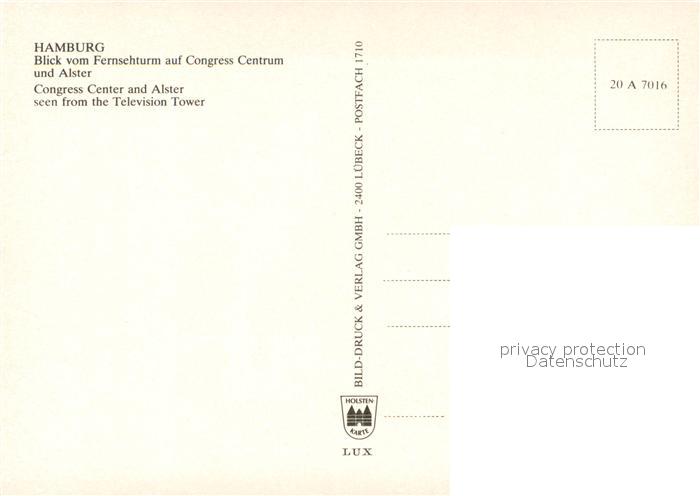 73707799 HAMBURG CITY Blick vom Fernsehturm auf Congress Centrum und Alster postalisch nicht gelaufen Erhaltung siehe scans [FriedD77] Frie Katcode 11110002000000