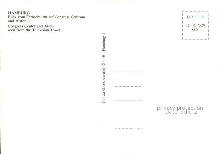 72255619 HAMBURG CITY Blick vom Fernsehturm auf Congress-Centrum und Alster postalisch nicht gelaufen Erhaltung siehe scans KatCode: 11110002000000