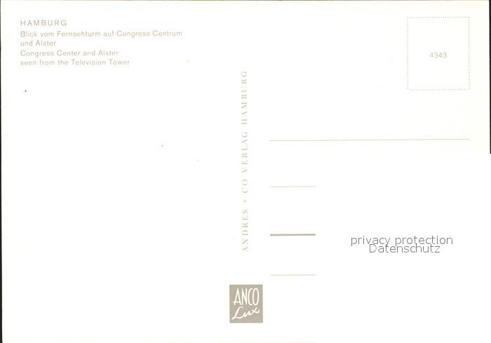 72212161 HAMBURG CITY Blick vom Fernsehturm auf Congress Centrum und Alster postalisch nicht gelaufen Erhaltung siehe scans KatCode: 11110002000000