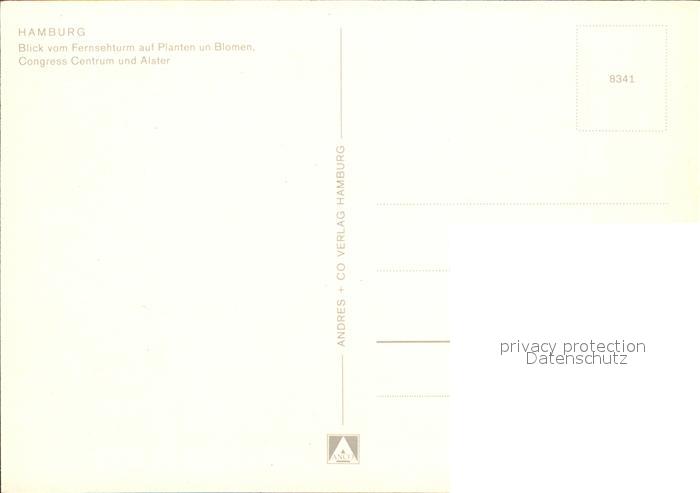 72547676 HAMBURG CITY Blick vom Fernsehturm auf Planten un Blomen Congress Centrum und Alster postalisch nicht gelaufen Erhaltung siehe scans [WerneD78 kv017box] KatCode: 11110002000000