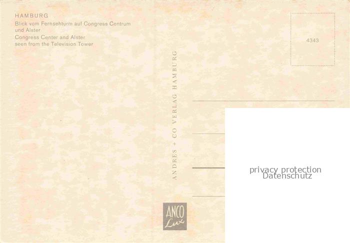 74153468 HAMBURG CITY Blick vom Fernsehturm Congress Centrum Alster postalisch nicht gelaufen Erhaltung siehe scans [FriedD77] KatCode: 11110002000000