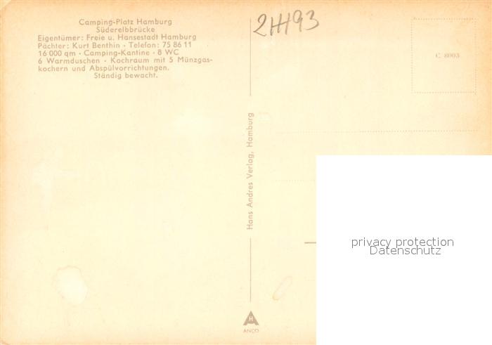 73711417 HAMBURG CITY Campingplatz Hamburg Suederelbbruecke postalisch nicht gelaufen Erhaltung siehe scans [LiesaD40] Lies Katcode 11110002000000