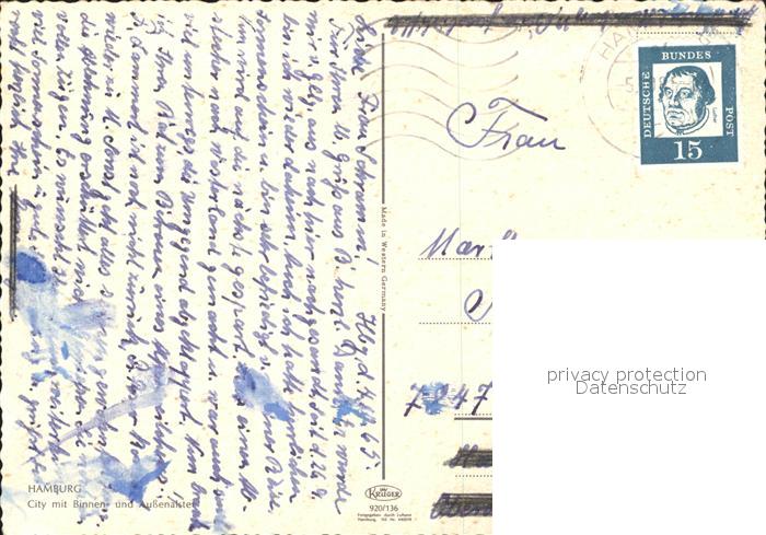 71905438 alte Postkarte HAMBURG CITY City mit Binnen- und Aussenalster postalisch gelaufen Erhaltung siehe scans KatCode: 11110002000000