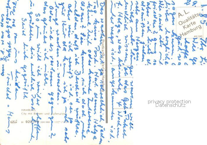 73704535 HAMBURG CITY City mit Binnen- und Aussenalster Passagierflugzeug postalisch nicht gelaufen Fliegeraufnahme Erhaltung siehe scans [FriedD77] Fliegeraufnahme Frie Katcode 11110002000000