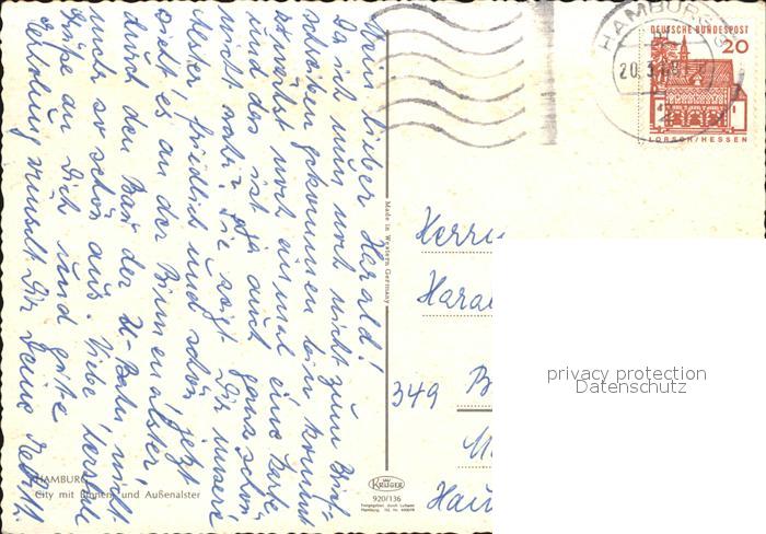 72582047 alte Postkarte HAMBURG CITY City mit Binnen und Aussenalster postalisch gelaufen Erhaltung siehe scans [WerneD78] KatCode: 11110002000000
