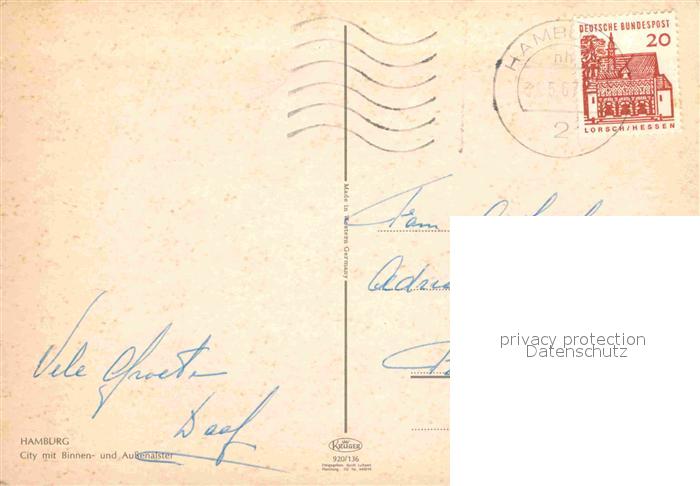72662294 alte Postkarte HAMBURG CITY City mit Binnenalster und Aussenalster Fliegeraufnahme postalisch gelaufen Erhaltung siehe scans [FriedD77] KatCode: 11110002000000