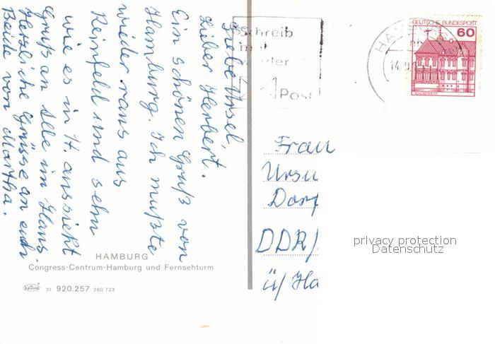 72697454 alte Postkarte HAMBURG CITY Congress Centrum mit Fernsehturm postalisch gelaufen Erhaltung siehe scans [WerneD78] KatCode: 11110002000000