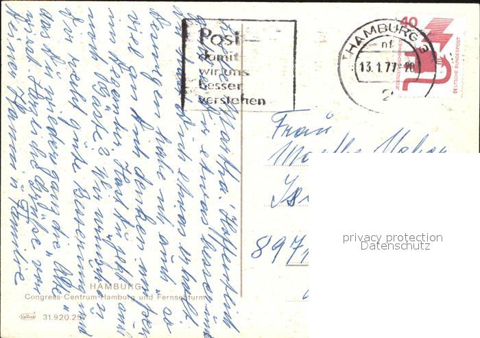 72582024 alte Postkarte HAMBURG CITY Congress Centrum und Fernsehturm postalisch gelaufen Erhaltung siehe scans [WerneD78] KatCode: 11110002000000
