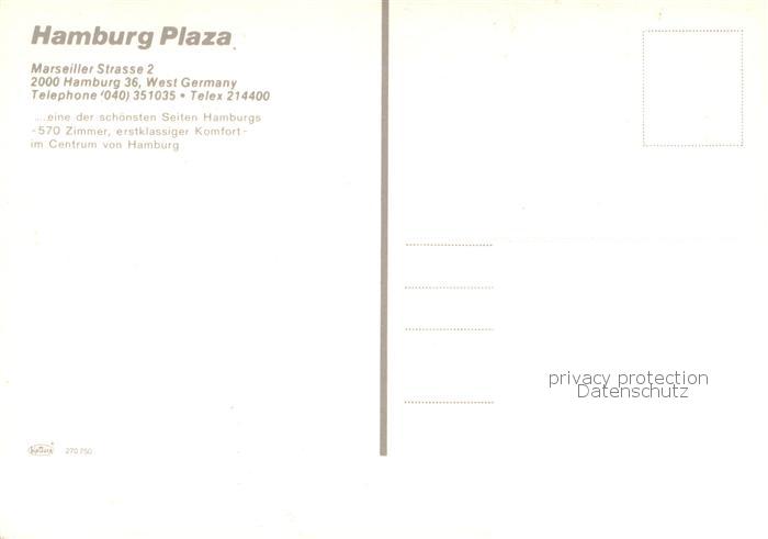 73755009 HAMBURG CITY CP Hotels Hamburg Plaza Fliegeraufnahme Foyer postalisch nicht gelaufen Erhaltung siehe scans [FriedD77] Frie Katcode 11110002000000