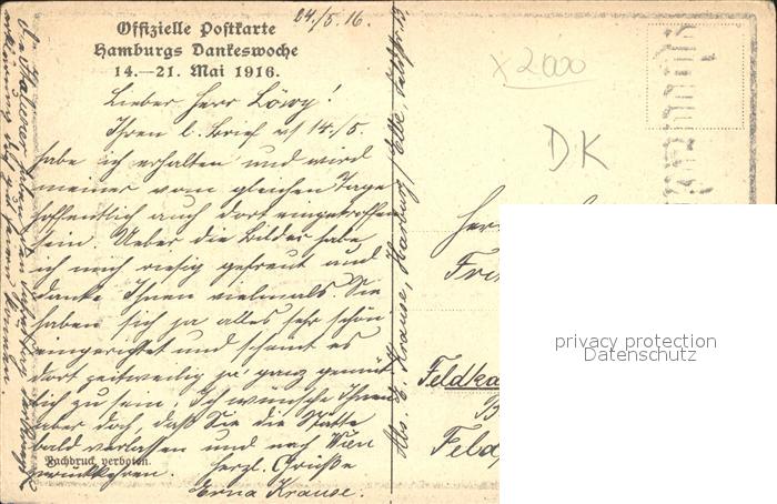 42060769 HAMBURG CITY Dankeswoche Mai 1916 postalisch nicht gelaufen Erhaltung siehe scans KatCode: 11110002000000