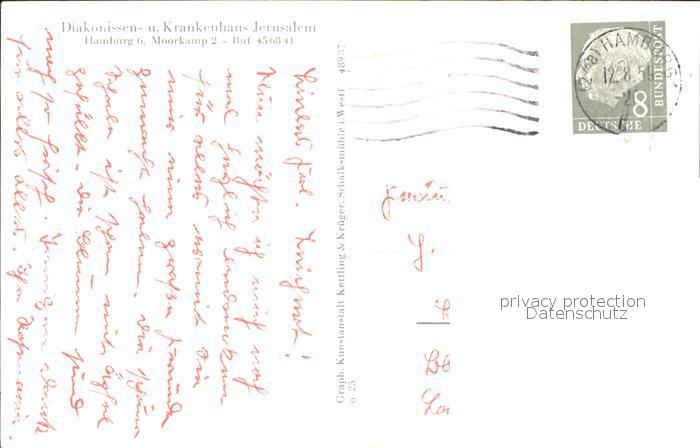 71874180 alte Postkarte HAMBURG CITY Diakonissen- und Krankenhaus Jerusalem postalisch gelaufen Erhaltung siehe scans KatCode: 11110002000000
