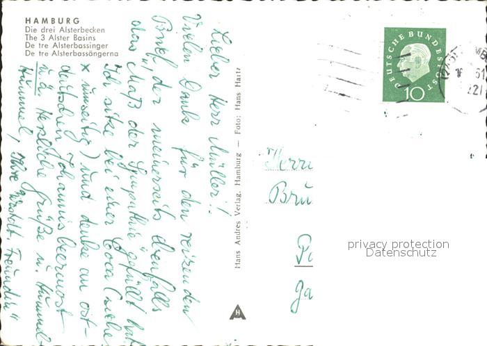 72272095 alte Postkarte HAMBURG CITY Die drei Alsterbecken postalisch gelaufen Erhaltung siehe scans KatCode: 11110002000000