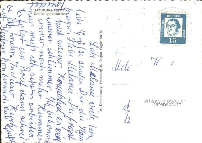 72074582 alte Postkarte HAMBURG CITY Dreifaltigkeitskirche postalisch gelaufen Erhaltung siehe scans KatCode: 11110002000000