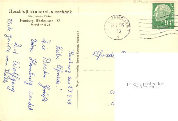 43499344 HAMBURG CITY Elbschloss Brauerei Ausschank postalisch gelaufen Erhaltung siehe scans [LiesaD40] alte Postkarte Lies Katcode 11110002000000