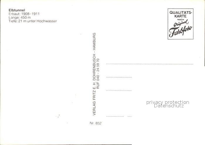 72402086 HAMBURG CITY Elbtunnel postalisch nicht gelaufen Erhaltung siehe scans KatCode: 11110002000000