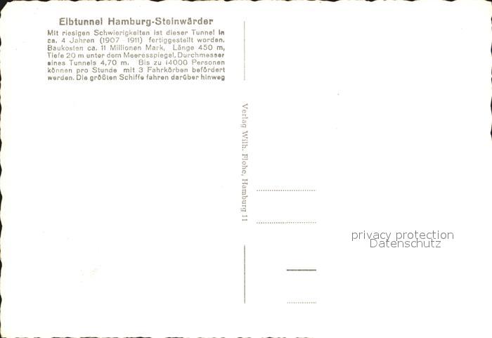 72395813 HAMBURG CITY Elbtunnel Steinwaerder postalisch nicht gelaufen Erhaltung siehe scans KatCode: 11110002000000