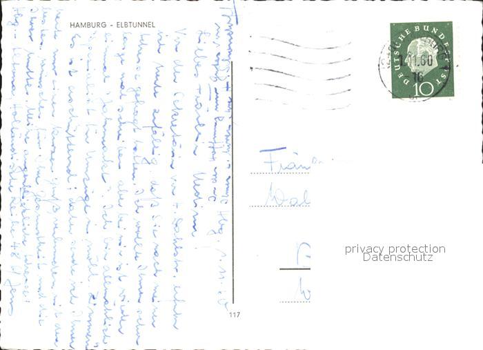 72566342 alte Postkarte HAMBURG CITY Elbtunnel postalisch gelaufen Erhaltung siehe scans [LiesaD40] KatCode: 11110002000000