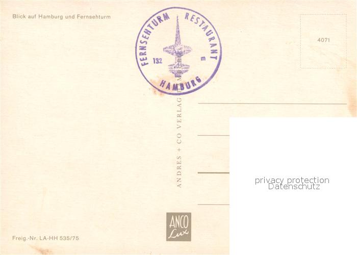72946872 HAMBURG CITY Fernsehturm postalisch nicht gelaufen Erhaltung siehe scans [KathaD81] KatCode: 11110002000000