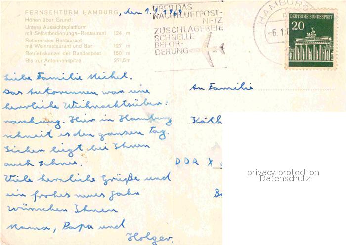 72713069 alte Postkarte HAMBURG CITY Fernsehturm Partie am Wasser postalisch gelaufen Erhaltung siehe scans [LiesaD40] KatCode: 11110002000000