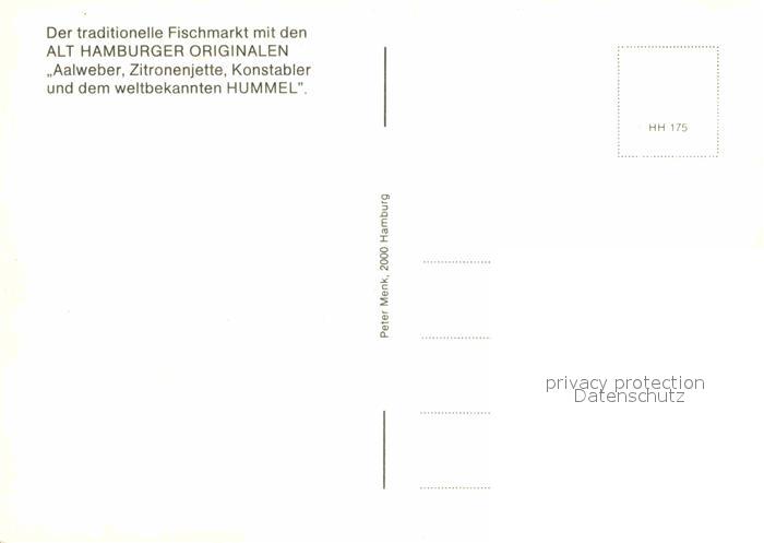 72715912 HAMBURG CITY Fischmarkt Hafen postalisch nicht gelaufen Erhaltung siehe scans [LiesaD40] KatCode: 11110002000000