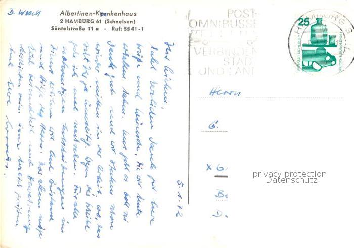 72964772 alte Postkarte HAMBURG CITY Fliegeraufnahme Albertinen Krankenhaus postalisch gelaufen Erhaltung siehe scans [LiesaD40] KatCode: 11110002000000