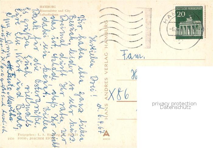 73757140 HAMBURG CITY Fliegeraufnahme Binnenalster u. Stadt postalisch gelaufen Erhaltung siehe scans [LiesaD40] alte Postkarte Lies Katcode 11110002000000
