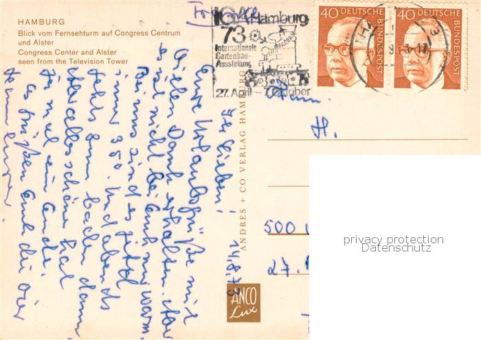 73757137 HAMBURG CITY Fliegeraufnahme Congress-Centrum u. Alster postalisch gelaufen Erhaltung siehe scans [LiesaD40] alte Postkarte Lies Katcode 11110002000000