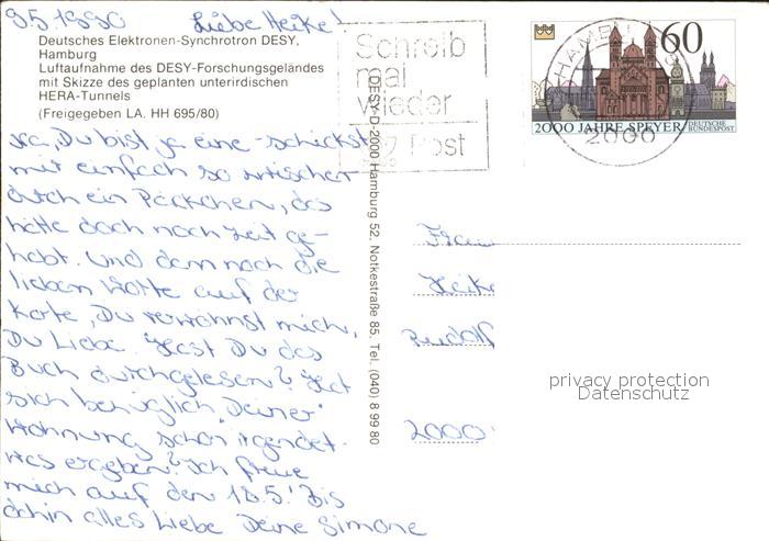 72113374 alte Postkarte HAMBURG CITY Fliegeraufnahme des DESY-Forschungsgelaendes postalisch gelaufen Erhaltung siehe scans KatCode: 11110002000000
